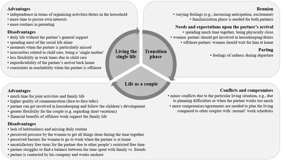 Women’s views regarding the reconciliation of offshore work and family life/partnership seemed to partly depend on their availability of external sources, such as support from friends and family, as well as on the couples’ own expectations. This agrees with the notion that a stronger accordance between perceptions and expectations of partners, e.g., regarding family satisfaction, could lead to less family conflicts [10] and less critical family structures [13].