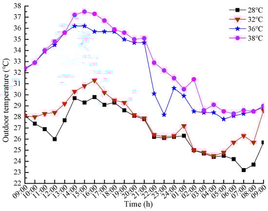 In addition, during each experiment group of a certain temperature condition, the hourly outdoor temperatures were measured every hour in the continuous 24 h. The results are shown in