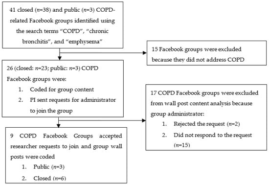 Apperson, A.; Stellefson, M.; Paige, S.R.; Chaney, B.H.; Chaney, J.D.; Wang, M.Q.; Mohan, A. Facebook Groups on Chronic Obstructive Pulmonary Disease: Social Media Content Analysis. Int. J. Environ. Res. Public Health 2019, 16, 3789. https://doi.org/10.3390/ijerph16203789