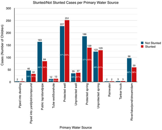 There is evidence to suggest that the variance in stunting prevalence is significant across primary water source (Pearson chi-square p < 0.0001), as shown in Figure 3.