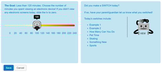 15]. The original “Switch” project utilized printed behavioral trackers to facilitate children’s self-monitoring and goal setting, but these features have now been embedded within the web-based customized SWITCH