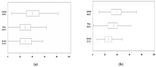 Because conjoint analysis method is more similar to a customer’s actual purchase decision or attribute evaluation, which is used in satisfaction research mainly on the measurement of attribute’s relative importance. Using the conjoint analysis method, attributes’ utilities and individual level utility can be derived, and the percentage of utility range is defined as relative importance. This can be seen in previous research []. Thus, the conjoint analysis technique is also applicable to drawing inference to the importance of attributes that can provide useful information to explain why people make different purchase decisions []. It is thus well accepted that this approach is an objective and realistic way to obtain the relative importance of attributes.