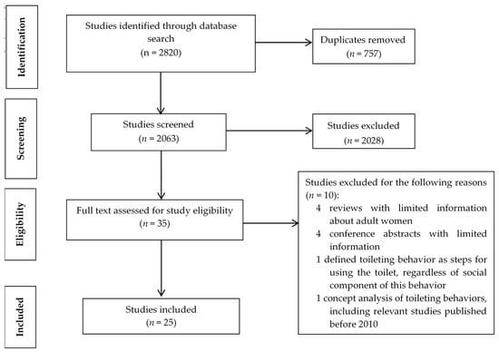 APA StyleWu, C., Xue, K., & Palmer, M. H. (2019). Toileting Behaviors Related to Urination in Women: A Scoping Review. International Journal of Environmental Research and Public Health, 16(20), 4000. https://doi.org/10.3390/ijerph16204000