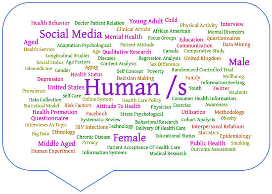 It is also essential to highlight the types of research seen in the review. For example, in terms of the research from Scopus, most publications were original articles in the form of quantitative cross-sectional studies or controlled trials. Another significant result was the topics of the studies, which were based on keywords, and showed a variety of multiple sub-areas of the health field relating to social networks, such as mental health, education, or chronic diseases.