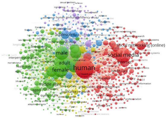 Overall, these findings have significant implications for the understanding of how the future of healthcare may lead to using social media in education and communication with patients. Additionally, this bibliometric analysis adds to the literature by elucidating the growing importance of social networks in health research, both as a topic of study and as a means of supporting scientific collaboration. This may help to inform future investments in public health research and surveillance using these different data sources, which may be particularly relevant for young people, who are a traditionally “hard to reach” group [82]. The bibliometric visualizations also provide an accessible means of communicating the key findings to researchers, policymakers, and those working in public health.