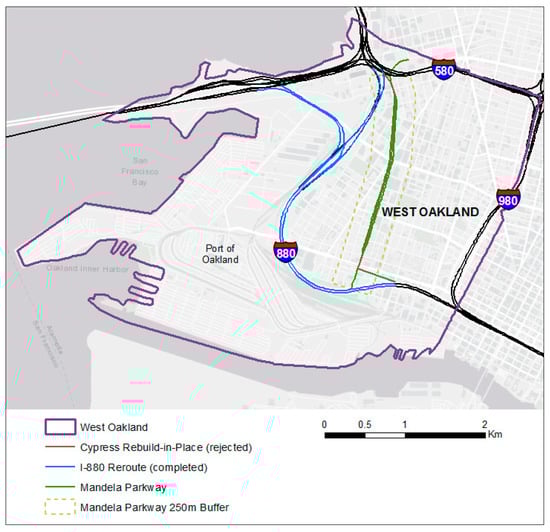 - City of Oakland. West Oakland Specific Plan. Available online: www2.oaklandnet.com/Government/o/PBN/OurOrganization/PlanningZoning/OAK028334 (accessed on 5 November 2018).