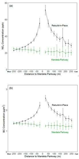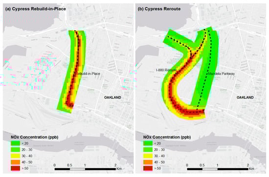 Patterson, R.F.; Harley, R.A. Effects of Freeway Rerouting and Boulevard Replacement on Air Pollution Exposure and Neighborhood Attributes. Int. J. Environ. Res. Public Health 2019, 16, 4072. https://doi.org/10.3390/ijerph16214072