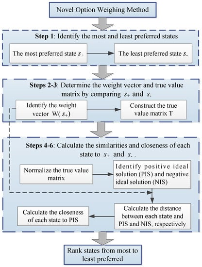 The detailed procedure for calculating a DM’s preference over states by using the novel option weighing method is depicted in