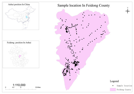 Relative location of Feidong County in Anhui Province, China, and distribution of the sampling sites in Feidong County.