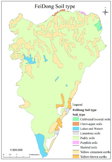 Distribution of the soil types in Feidong County (data from Anhui Provincial Agriculture Committee).