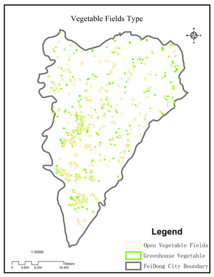 The obtained spatial distribution was intersected with the spatial distribution of the total vegetable fields from Feidong’s agricultural survey data in 2016 to obtain the spatial distributions of the OV and GV fields (Figure 4).