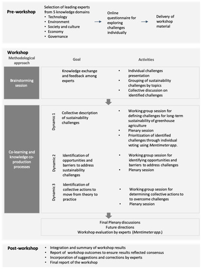 Methodological workflow of the workshop for addressing sustainability challenges for the greenhouse horticulture in Almeria (Spain). Adapted from [33].