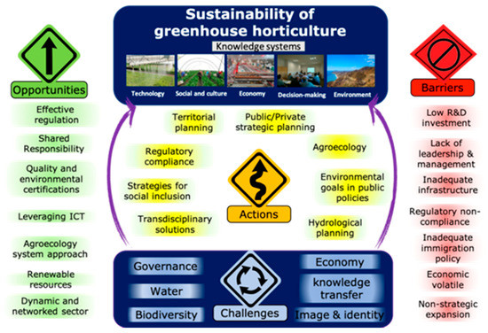 Sustainability challenges, opportunities, barriers and actions for the sustainability of the greenhouse horticulture.