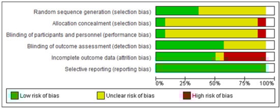 Review authors’ judgements about each risk of bias item presented as percentages across all meta-analysis articles.