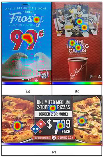 Teen-generated hot spots on vendor signage (a), transit shelters (b), and billboards (c).