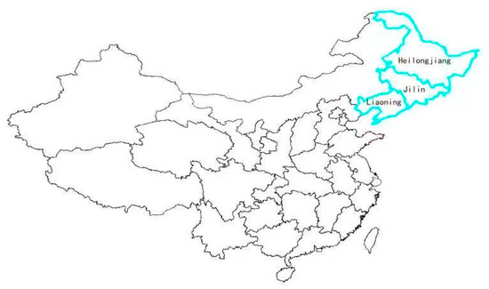Northeast China (i.e., Liaoning Province, Jilin Province, and Heilongjiang Province, see Figure 1), as the first and one of the most important industrial bases, has made significant contributions to the overall economic development of China over the past 40 years. However, since the policy of the reform and opening up to the world were carried out, its economic development and urban construction have gradually dropped behind the east coastal areas. With such an economic stagflation, the northeast region appears to undergo a deep socio-economic transformation, most notably the rapid change of population structure. According to “Report on the Development of China’s Floating Population 2016”, the northeast region is facing great population crisis issues, such as extremely low fertility, population ageing acceleration, and unbalanced age structure. Compared to other provinces and municipalities in China, the total fertility rate in the northeast region is only 0.75, which is much lower than that of the national average (1.18). The population growth has also stalled, which was only 0.21% on average over the period 2006–2015, less than half of the national average (0.5%). These processes have been accompanied with a significant increase of the media age of the population. In 2015, the median age of the northeast population was 43 years, whereas that of the national population was only 38 years. Moreover, population loss in northeast China is also significantly observable. Based on the census data, the net outflow of population in 2010 was about 2.19 million, which was five times more compared to the figure in 2000, further aggravating the population ageing.