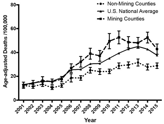 - Esch, L.; Hendryx, M. Chronic cardiovascular disease mortality in mountaintop mining areas of central Appalachian states. J. Rural Health 2011, 27, 350–357. [Google Scholar] [CrossRef] [PubMed]