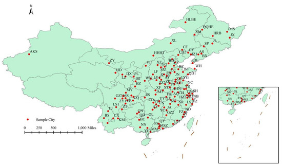 The geographical distribution of sample cities.