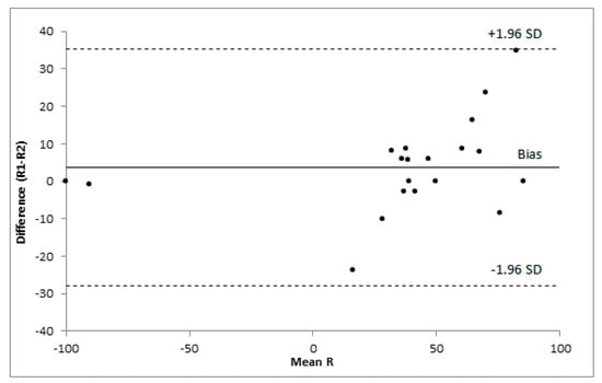 - Bland, J.M.; Altman, D. Statistical methods for assessing agreement between two methods of clinical measurement. Lancet 1986, 327, 307–310. [Google Scholar] [CrossRef]