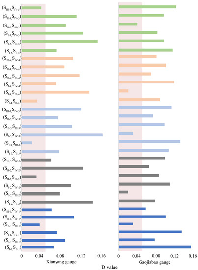 The Kolmogorov–Smirnov (K-S) test was used between IMFs. The K-S results are shown in Figure 10.