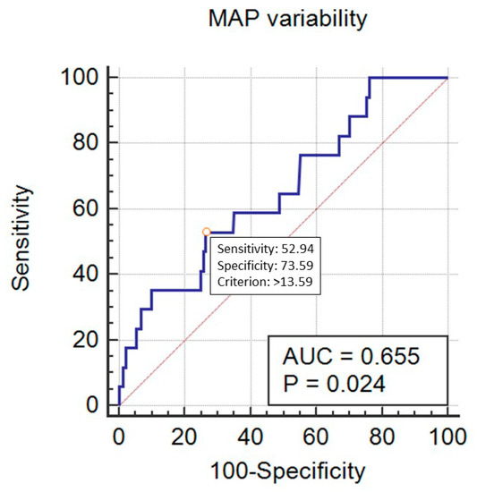 Prediction of mortality by the mean blood pressure (MAP) variability (expressed as MAP_Cv in %).
