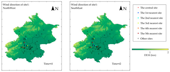 when the wind direction of Site 1 was northwest, Site 24 was in the upwind area, thereby making it more related to Site 1 than the other sites (excluding the nearest surrounding site Site 2). By contrast, at time