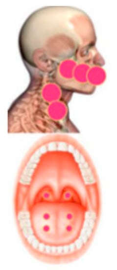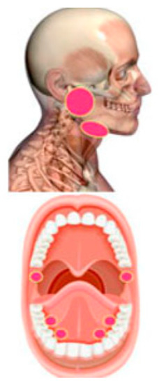 PBM treatment area for the management of oral dryness [19]