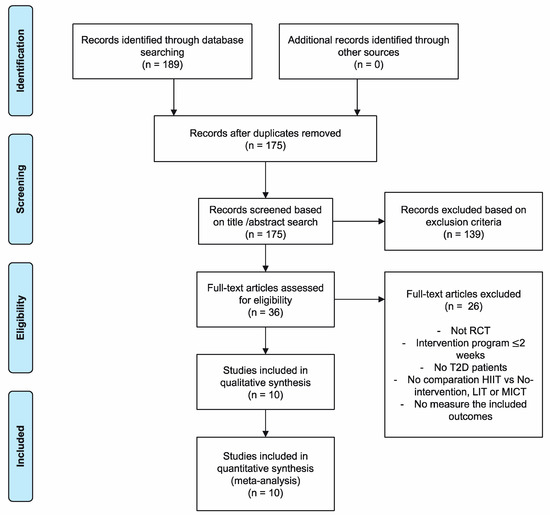 As shown in the flowchart (Figure 1), after searching in different databases, we obtained a total of 189 potential articles and, after verifying the exhaustive compliance with the inclusion criteria, 10 RCTs were included in the review and subsequent meta-analysis.