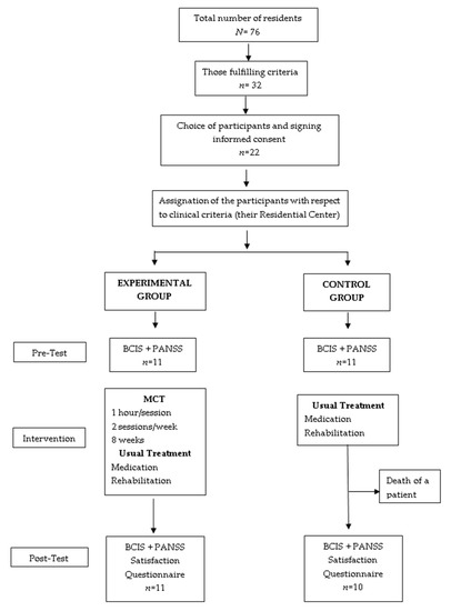 The aim of our study was to compare the effectiveness of MCT against the usual treatment on cognitive insight in a sample of patients with chronic schizophrenia. As a secondary aim, we evaluated the impact of the MCT on positive symptomatology and examined the program’s degree of applicability in our context. We hypothesized that MCT significantly improves cognitive insight, (e.g., increasing self-reflection and decreasing self-certainty levels) while also contributing to a significant reduction in positive symptomatology.