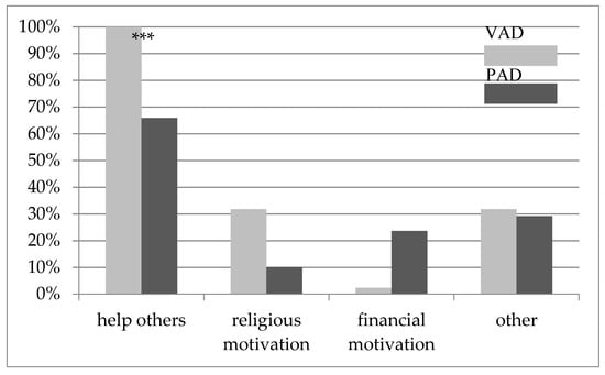 Returning to one of our initial questions on the motivational factors of refugee work, we revealed that every VAD and 66% of the PAD wanted to “help others”. Although the two groups differed significantly on this point, it was still the most frequently named motivational factor of both groups. Financial motives were mentioned by 23% of the PAD and only 2% of the VAD. These results suggest a rather altruistic motivation for refugee work and confirm earlier studies with similar results [,,]. Overall, both groups felt greatly enriched by working with refugees.
