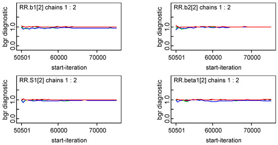 - Brooks, S.P.; Gelman, A. General methods for monitoring convergence of iterative simulations. J. Comput. Graph. Stat. 1998, 7, 434–455. [Google Scholar]