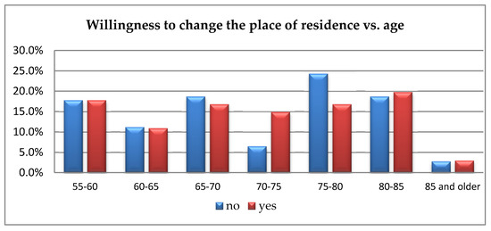 The studies analogical to the aforementioned ones were conducted to determine the willingness to change the place of residence depending on age. Due to the fact that in 14.3% cells, the expected number was less than 5, the analysis was carried out using Fisher’s exact test. The analysis showed no significant differences regarding the willingness to change the place of residence depending on the respondents’ age (p = 0.550). Therefore, no correlation occurs between age and the willingness to move. Figure 3 illustrates the responses provided by the respondents.