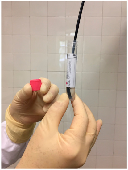 The first sample was carried out by shaking the optic tip of the insertion shaft of the FFL in 2 mL of in a sterile collection tube with liquid Amies preservation medium (Copan, Brescia, Italy) (Figure 1).