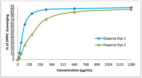 | Disperse dye 1 | 23.4 ± 1.2 | 62.2 ± 4.1 | 28 ± 1.9 | 53.6 ± 5.8 | 64.5 |