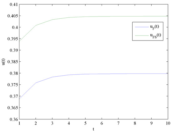 | The net profit rate with at time , denotes without and with government subsidy, respectively. |