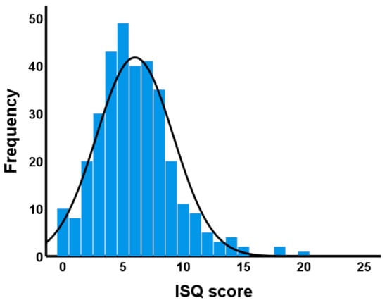 Distribution of ISQ scores. Higher ISQ scores imply poorer immune status.