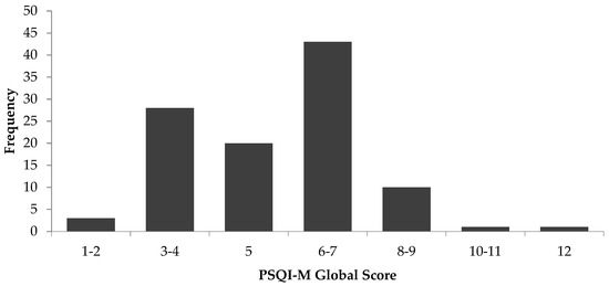 Frequency distribution of PSQI-M global score (n = 106). PSQI: Pittsburgh Sleep Quality Index.