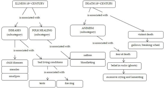 Distinct health beliefs and practices among Roma related to illnesses and death have attracted attention from various fields of research [1,2,3,4,5,6,7,8,9,10,11,12]. The current research interest mostly focuses on topics such as the description of Roma health [13], Roma health behaviour [14,15], understanding Roma health [16] and its determinants [17] from the management of most common illnesses among the Roma population [18] and health-mediation programs [19] to comparisons with the non-Roma population regarding specific chronic illnesses [20,21,22,23,24,25,26]. Seemingly, some beliefs and practices are more stable than others, and some are more prone to change over time. How the opinions on illness and death of Roma from their perspective have changed after centuries has not been described so far, although a comparison on food and accommodation has been published [27]. We focused, therefore, on comparing two related issues, i.e., illnesses and death from the Roma perspective as they were described in the late 18th century and 250 years later.