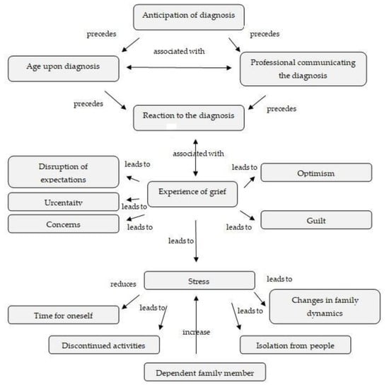 The results show that there is a time sequence that begins with the anticipation of the diagnosis, before receiving it officially. Once the diagnosis has been communicated, family members react in a variety of ways. Among these reactions we identified the phases of shock, denial, guilt, anger, fear, or a positive attitude. The experience of grief is varied and ambiguous, including the disruption of expectations in virtually all cases, as well as the existence of various feelings, such as uncertainty, worry about the future, guilt, and, in some cases, optimism.