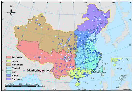- Zhao, S.P.; Yu, Y.; Yin, D.Y.; He, J.J.; Liu, N.; Qu, J.J.; Xiao, J.H. Annual and diurnal variations of gaseous and particulate pollutants in 31 provincial capital cities based on in situ air quality monitoring data from China National Environmental Monitoring Center. Environ. Int. 2016, 86, 92–106. [Google Scholar] [CrossRef]
