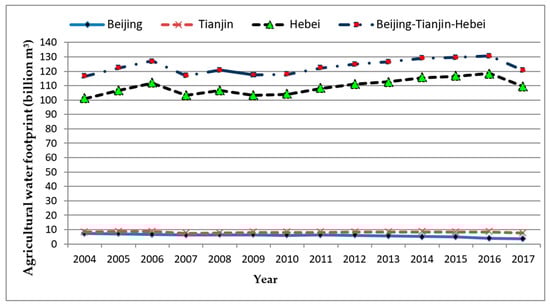The change of agricultural water footprint in Beijing–Tianjin–Hebei region (BTHR) (2004–2017).