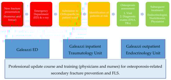 The purpose of this retrospective observational study is to support this request by describing the FLS protocol adopted by a high volume orthopedic hospital (Istituto di Ricovero e Cura a Carattere Scientifico Orthopaedic Institute Galeazzi, Milan, Italy), after 26 months of implementation (1 April 2017–31 May 2019); introducing its preliminary outcomes, and providing an early evaluation in light of international guidelines and recommendations.