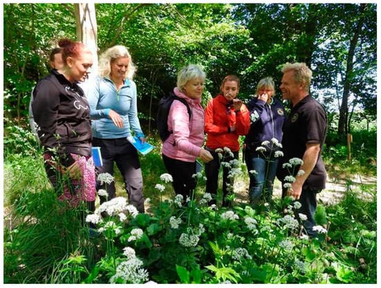 In today’s society, lifestyle-related illnesses, such as stress-related mental illness, cardiovascular disease, and type 2 diabetes, constitute an increasing proportion of the population’s morbidity. Staying in natural environments has been proposed for over 30 years to promote health, and this has in particular been about preventing or curing lifestyle-related illnesses, e.g., by reducing high stress levels and increasing people’s ability to focus attention [1]. The research area is developing rapidly regarding issues aiming to document and explain the health effects of stays in natural environments. The positive effects of visits to natural environments on human health has now a solid scientific basis, where proximity and exposure of green areas during everyday life lead to better health and a longer life expectancy [2,3,4,5,6]. The improved health is explained by many interacting health-promoting factors, such as exposure to sunlight and fresh air, increased physical activity, and that the natural areas reduce high stress levels and increase executive function [1]. Another health promoting factor is of social character and embrace the effect of being together with people and sharing experiences e.g., positive activities in nature which was reported in Sahlin et al. [7].
