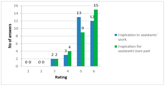 Distribution of caretakers’ ratings to the course importance for inspiration and joy in their work and for their own part. N = 30.