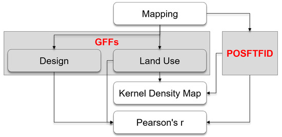 Based on the review of the literature, this study proposes a newly defined set of GFFs to be correlated with POSFTFID. This paper seeks to find answers to the following questions: (1) Are spatial GFFs correlated to POSFTFID? (2) If yes, which spatial GFF and which land use are correlated to POSFTFID? (3) To what extent? (4) Which GFFs are strongly correlated with POSFTFID, and which ones with individual users of the POS that may potentially engage in face-to-face interactions?