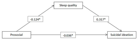 Mediating effect of sleep quality on the association between prosocial problems and suicidal ideation.
