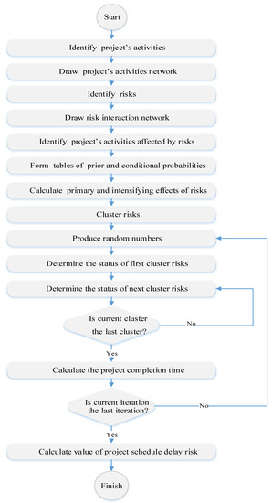 Mentioned approaches for assessing project risks, often analyze the risks without considering interaction relationships among them while in practical cases risks are correlated and sequentially the probability or impact of a risk must be estimated regarding to the occurrence or nonoccurrence of its parent risks. For this purpose, Monte Carlo simulation and Bayesian network (BN) methods are applicable. Monte Carlo simulation is a computational approach based on the repeated random sampling and statistical analysis to obtain numerical results. The underlying concept is to use randomness to solve problems that are impressed by uncertain parameters, many of which are difficult to obtain experimentally. Monte Carlo simulation performs risk analysis by building models of possible results by substituting a range of values for any uncertain factor. Some scholars have used this method to perform risk analysis. Sadeghi, Fayek, and Pedrycz [16] for dealing with the problem of handling both random and fuzzy uncertainties in a risk analysis process, proposed a Fuzzy Monte Carlo Simulation (FMCS) framework for risk assessment of construction projects. In the developed framework, a fuzzy cumulative distribution function was used to represent uncertainty in the risk assessment. Finally, for the purpose of verifying the feasibility of the FMCS framework, a simulation template was developed for estimating the cost of a highway overpass project.