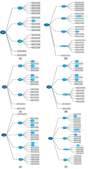 Visualized decision trees of the 6 classifiers: (a) the visualized decision tree of Classifier 1; (b) the visualized decision tree of Classifier 2; (c) the visualized decision tree of Classifier 3; (d) the visualized decision tree of Classifier 4; (e) the visualized decision tree of Classifier 5; (f) the visualized decision tree of Classifier 6.