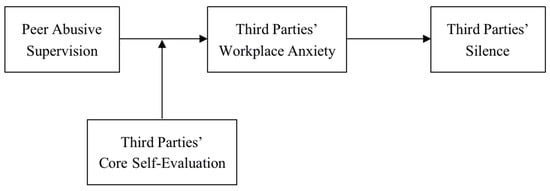 In conclusion, we expect to make theoretical contributions from the following aspects. First, the present paper is a timely response to the call that prior researches on the theme of abusive supervision have a single perspective, and researchers need to pay attention to study the impact of abusive supervision from multiple perspectives [6,21,22]. This is conducive to enriching the traditional literature on the consequences of abusive supervision, which are mainly concentrated on bilateral perspectives. Second, this is different from the prior literatures, which mostly focus on exploring the impact of peer abusive supervision on the explicit behavior of third parties. Based on the research framework of affective events theory, we discuss the possible self-protection motivation of third parties in the process of evaluating workplace events. It lays a cognitive foundation for the choice of the implicit behavior of silence of the subsequent third parties. Furthermore, this paper responds to the call for paying attention to the mediating role of the emotional reactions of third parties, between peer abusive supervision and their behavioral choice [15]. Drawing affective events theory, we construct a model of emotional mechanism between peer abusive supervision and third parties’ silence, and suggest that peer abusive supervision affects silent behavior indirectly by triggering workplace anxiety. Finally, by introducing core self-evaluation as a moderating variable to verify the boundary condition of peer abusive supervision’s spillover effect, it further confirms when our mediation mechanism will work.