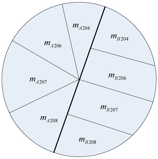 We then turned to lead pollution sources identification in the presence of multiple sources of pollution. We at first considered the simplest case in which there were only two lead pollution sources. The two lead pollution sources are labeled as A and B, respectively, and the contaminated point was denoted as P. In order to resolve the source of the lead contamination accurately, the actual target is to calculate the contribution rate of A and B for the point P, respectively. The lead composition fingerprint of contamination point P is shown in Figure 1. Let be the total quality of lead in point P, where is the lead quality of point P which comes from source A, and is the lead quality of point P which comes from source B. As such, we get the following relationship: